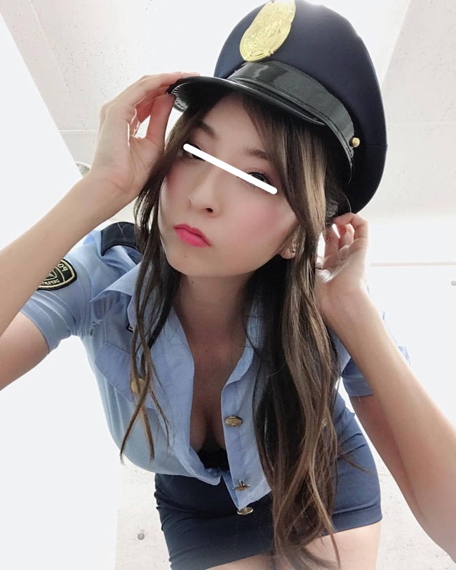 バスタオルを巻いた姿ではにかみ笑顔、なぎさちゃんはいそいそと無料コスプレ「ポリス」に着替えてくれる。