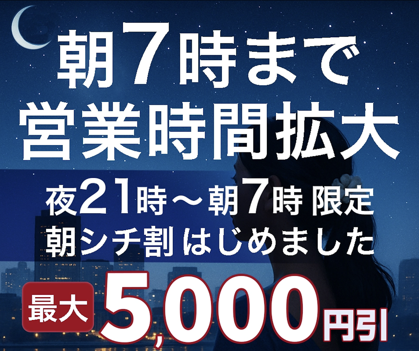 1.【最大5000円OFF】朝7時まで営業時間拡大キャンペーン【終了未定】