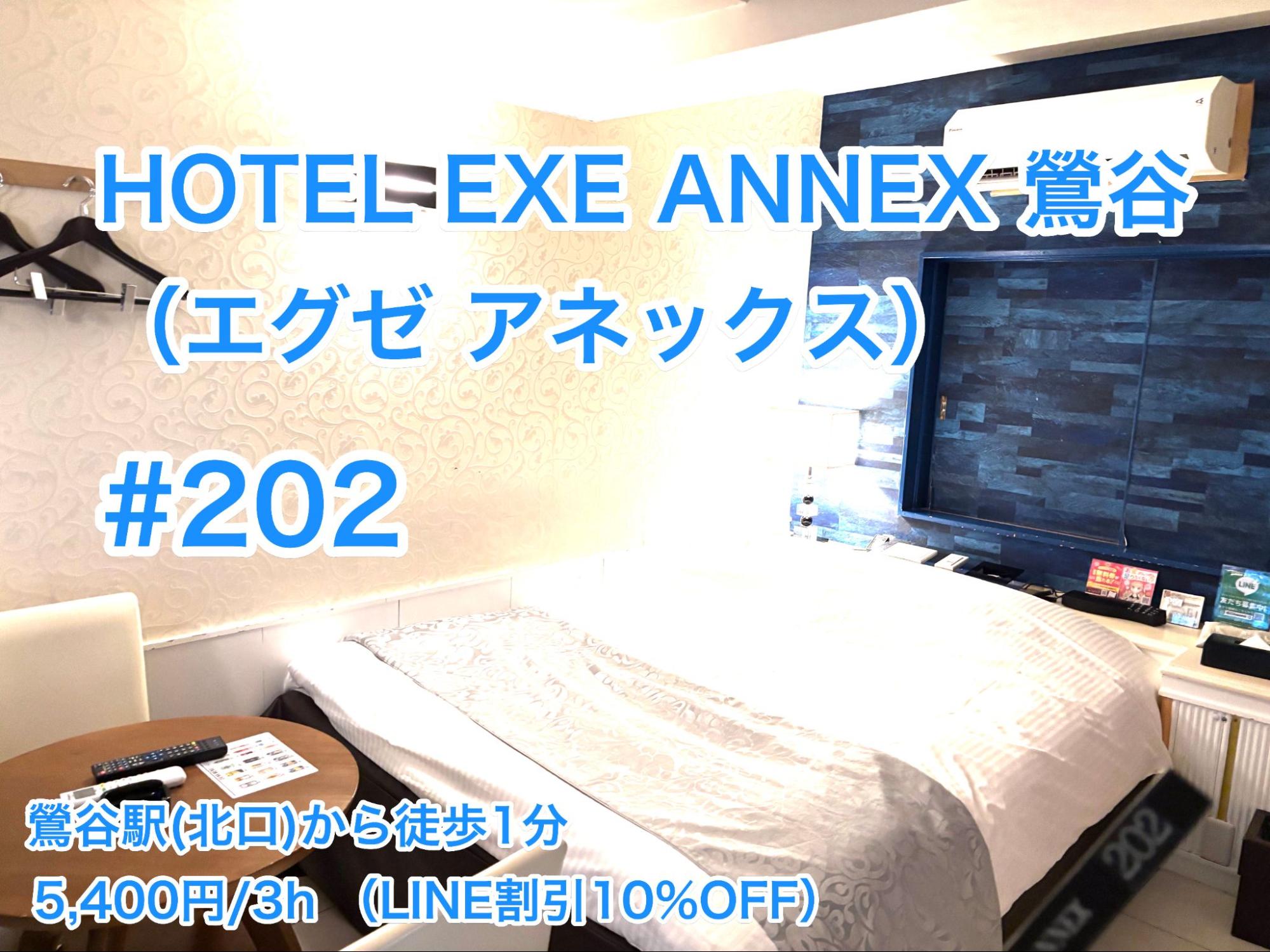 JR鶯谷駅の北口から徒歩で1分。「HOTEL EXE ANNEX(ホテル エグゼ アネックス)」…本日は平日料金の6,000円/休憩3時間にLINE登録の10%オフ割引を適用、なんと5,400円(税込)でございっ!